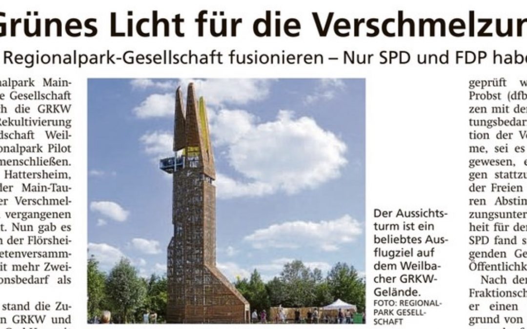Zur Abstimmung stand die Zusammenführung von GRKW und Regionalpark Pilot gGmbH – mit dem Ziel, die Gesellschafterstruktur zu vereinfachen und dadurch Kosten einzusparen. In dem neuen Gebilde sind die drei Städte sowie der Regionalverband und der Main-Taunus-Kreis mit Anteilen von jeweils 20 Prozent vertreten. SPD und FDP führten fehlende Hintergründe und die Sorge vor einem erneuten Kiesabbau im Stadtteil Weilbachs als Gründe für ihr Zögern an. Beide Oppositionsparteien hätten die Entscheidung gerne aufgeschoben, bis ein Vertreter der GRKW im Ausschuss berichtet hat.
